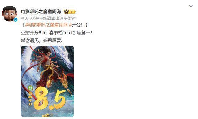 “豆瓣开分8.5!春节档Top1断层第一!