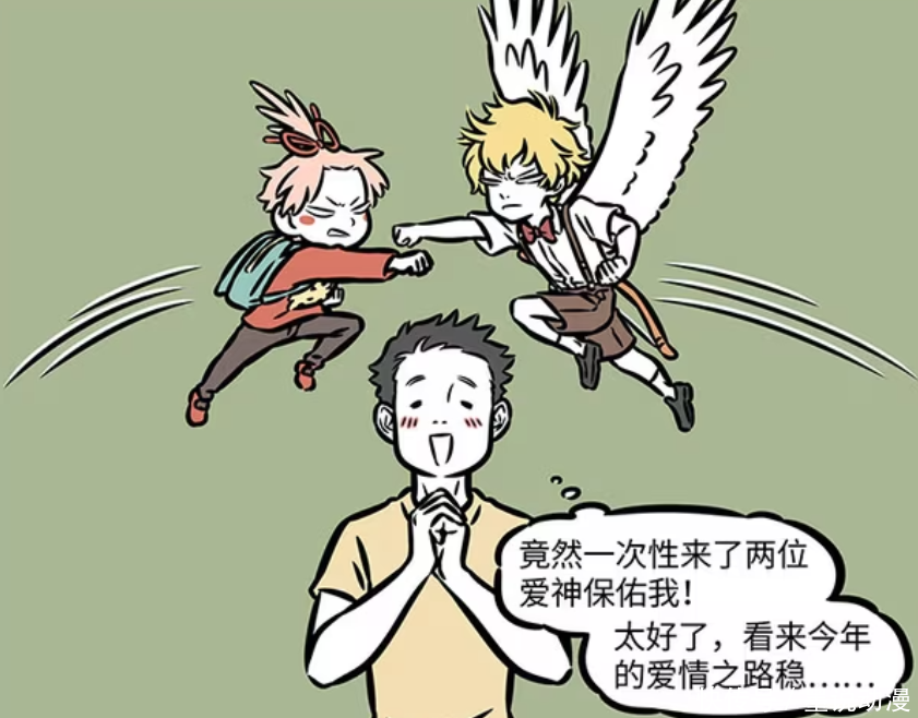 看过夙昔漫画的都知谈,丘比特和媒妁只消一碰面就会打一架。表面上中国的姻缘就该媒妁掌管,但是跟着期间发展,异邦神仍是涌入中国地界。小伙子没思到一次许诺,会来两位圣人。小伙子还在思,本年的爱情之路应该是稳了。