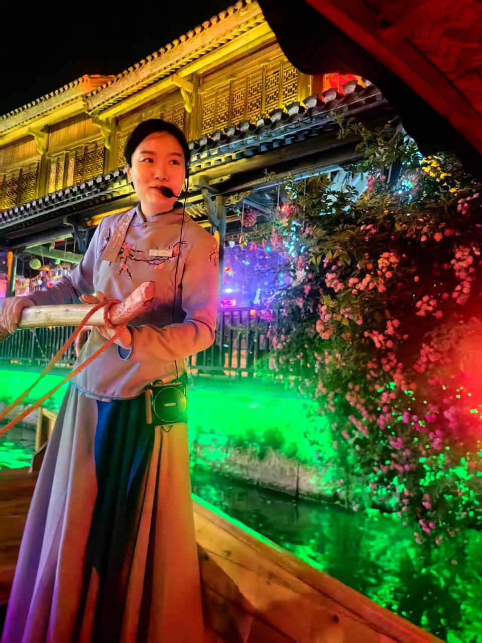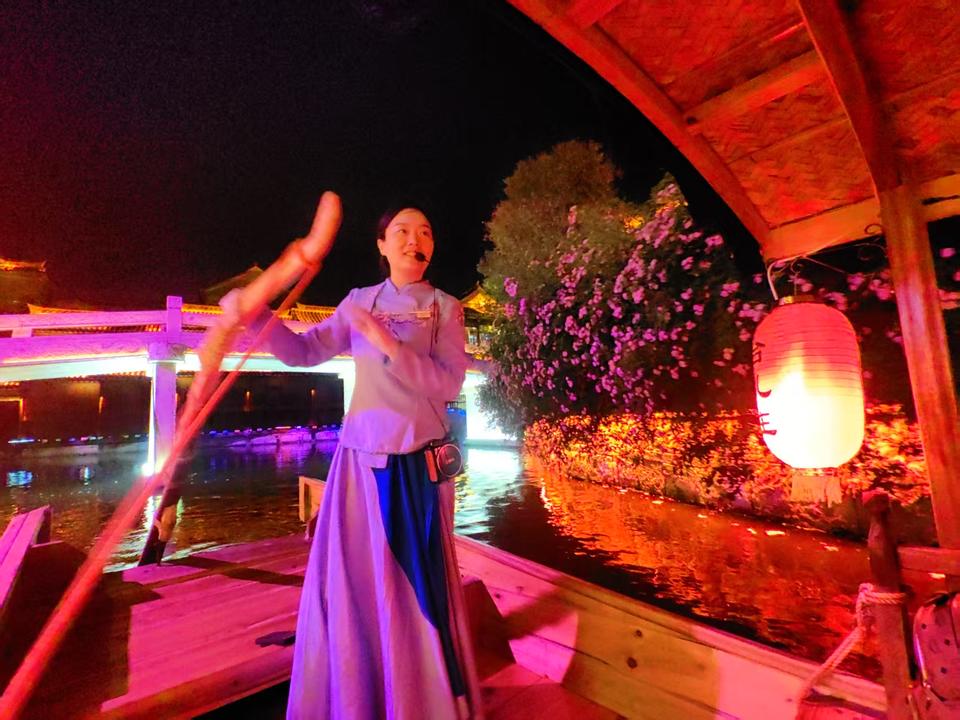 台儿庄古城的“船妹子”绝大多量都是枣庄腹地东谈主,她们对腹地情况的熟稔,为辽阔的宾客了解、探寻当地文化风情,提供了坚苦的不雅察窗口。经她们作事,一些旅客还成为台儿庄古城的“回头客”。