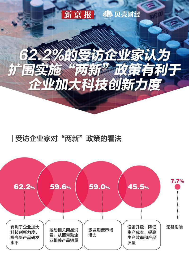 2024年,中央经济职责会议上初度说起“两新”政策,并建议2025年将增多刊行超长久终点国债,延续接济“两重”项目和“两新”政策实施。62.2%的受访企业家示意,“两新”政策的扩围实施将故意于企业加大科技改进力度,提高新址品研发水平;59.6%以为其或将拉动商量商品破钞,从而带动企业商量居品销量;59.0%以为其能激勉破钞商场活力。