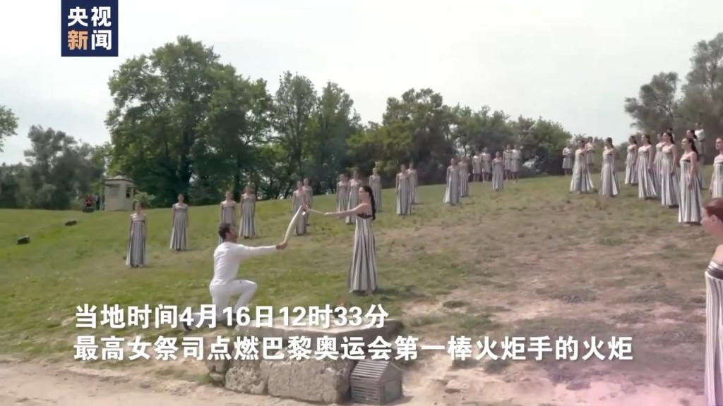巴黎奥运会奥运火种在古奥林匹亚赫拉神庙前集聚,原筹算使用凹面镜集聚火种,并燃烧火种盆。但由于天气原因,由希腊女演员玛丽·米娜饰演的最高女祭司使用了4月15日集聚的备用火种燃烧采火火把。