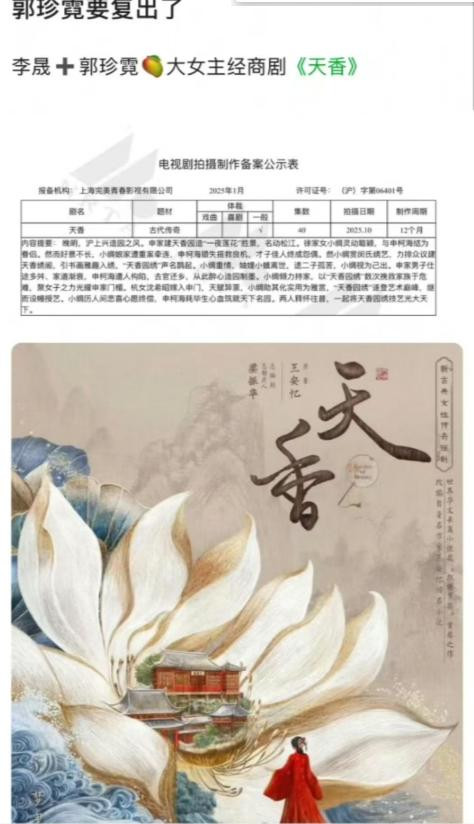 坊间一直流传着她将参演《春日宴》或《天香》的音信,这两部剧在业内都属于有重量的格式,选角工夫郭珍霓的名字被网友反复保举。