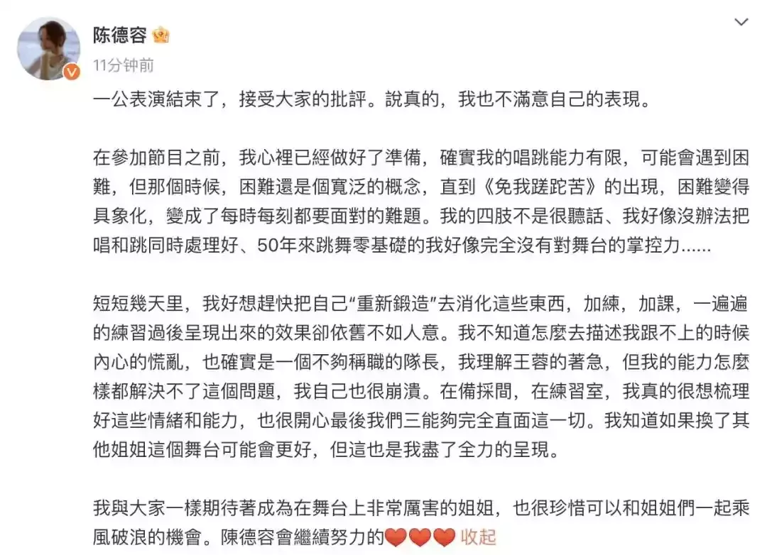 濒临外界狂风暴雨的月旦,陈德容在节目播出后发布长文说念歉,承认我方认知欠安,风景秉承不雅众的指正。干系词,这份说念歉信中依旧充斥着诸多辩解之词,令不少网友质疑其诚意。