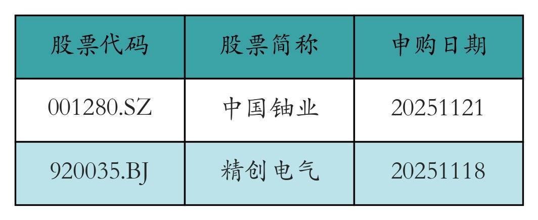二、新股申购情况上周有2只新股刊行,细目见下表: