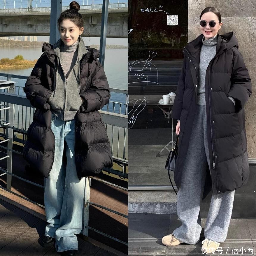 长款羽绒服的中枢上风,在于它对女性身材的极高包容度和场景适配性。岂论是腰腹有赘肉、胯宽腿粗,已经肩背略显结识,过膝至小腿中段的羽绒服王人能神秘遮拦身材短板,勾画出流通的体态线条,幸免短款羽绒服容易带来的“肥胖感”。
