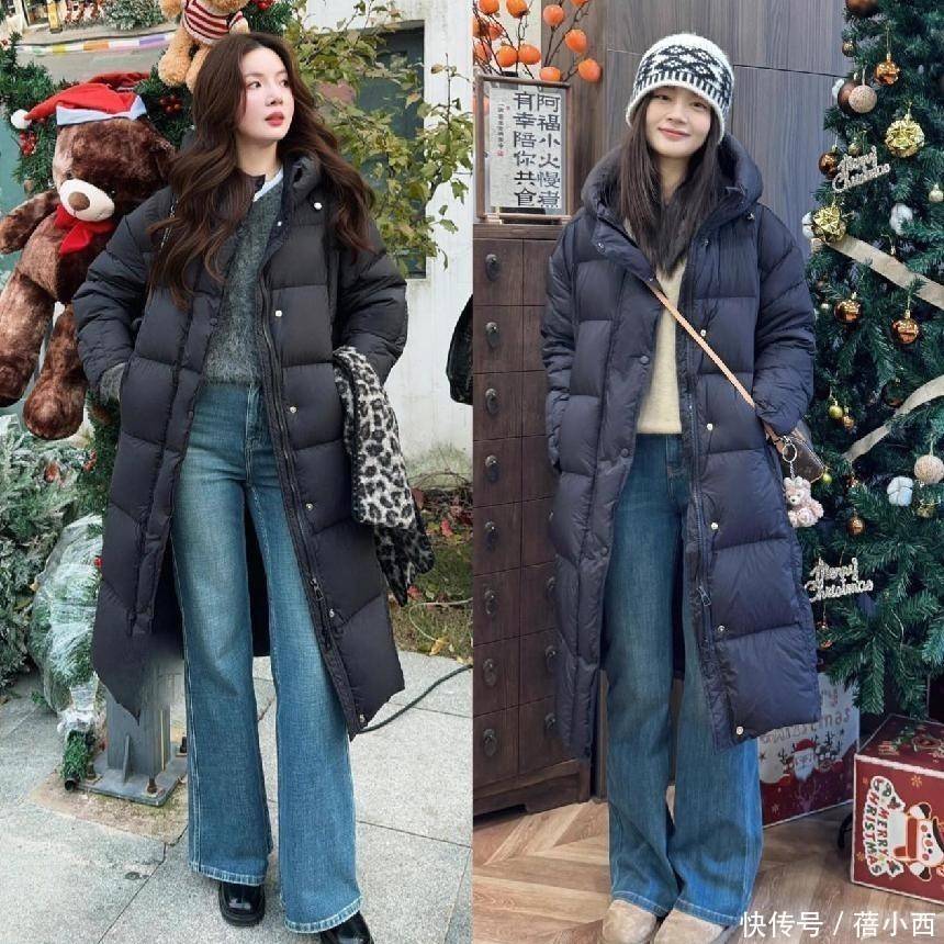 长款羽绒服+牛仔裤,是永不外时的闲适风组合,主打利落线路,又能兼顾慈悲与元气,符合大无数平方场景。这一组搭配的要害的是“优化比例”,幸免长款羽绒服压身高,推选姐妹们优先汲取高腰直筒牛仔裤或微喇牛仔裤,高腰野心能拉高腰线,优化三七分身材比例,让双腿看起来更修长。
