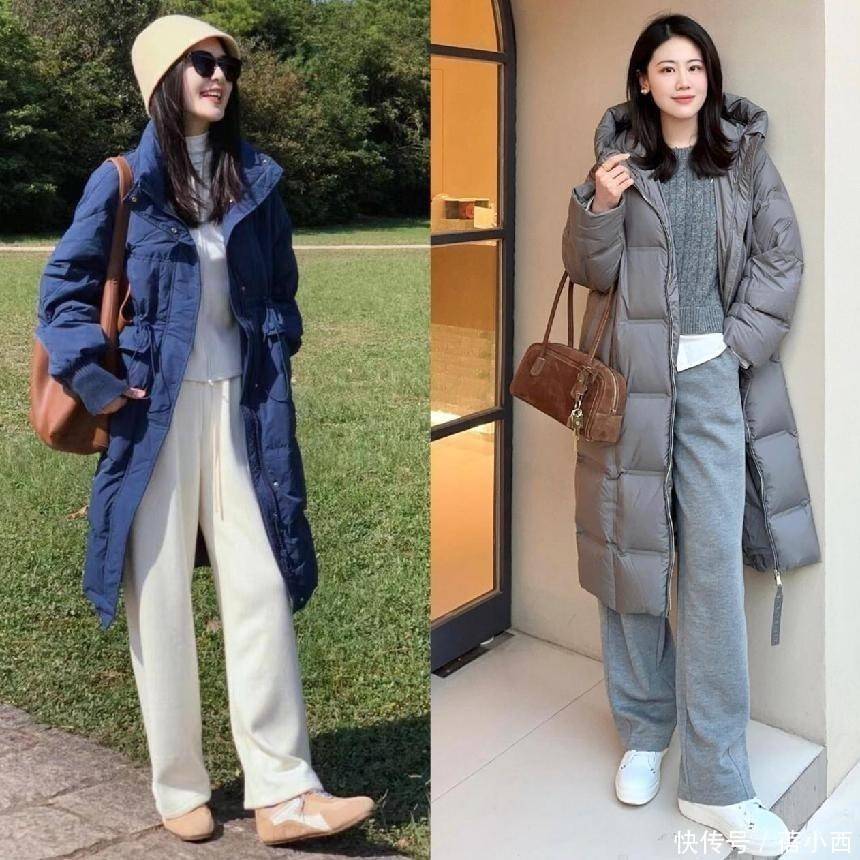 再说说长款羽绒服+阔腿裤,这一组搭配然而近几年超火的摧毁感搭配,主打高档慵懒,尤其符合追求慵懒随心气质的熟识女性,宽松的阔腿裤能包安身材舛误,又能穿出绝不贫苦的闲雅感。